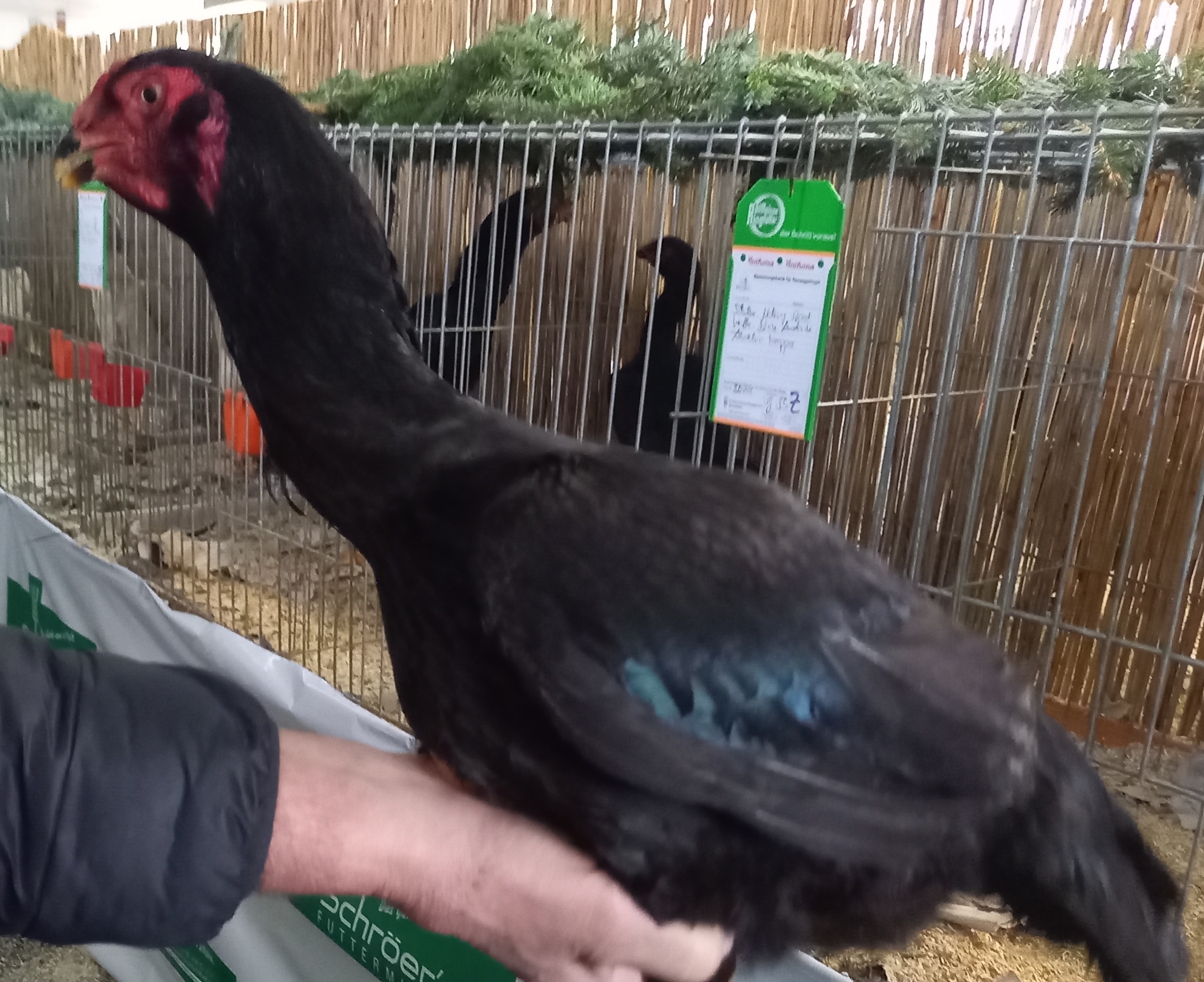 Deutsche Zwerg Langschan schwarz | Gerhrad Ressl | C135 Neulussheim | 0172/6379533 | gerhard.ressl1@gmail.com | Diese Rasse steht als stark gefährdet auf der "Roten Liste" der vom Aussterben bedrohten Rassen! |
